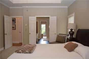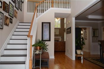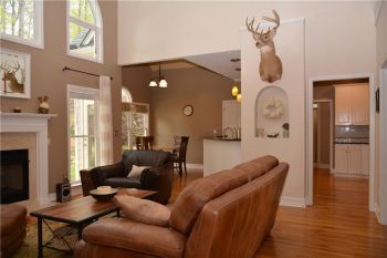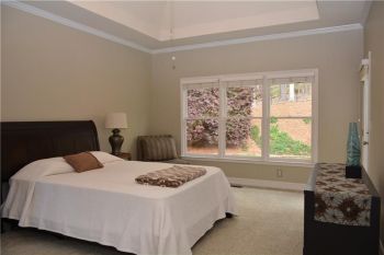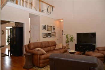 Beautiful home & fantastic price in Bradshaw Farm!Open floor plan with lots of natural light.Master & 2nd bedroom on main level,& 3 bedrooms on 2nd floor.2 story Foyer & great room.Kitchen has granite counters & stainless steel appliances.New flooring in Master bath,Basement & main level bedroom.New deck,Roof replaced in 2016!Partially finished basement with full bath & lots of storage space.Desirable golf community w/ swim & tennis.Beautiful view from front of the 12th hole of the golf course & the fenced backyard backs up to greenspace, providing 3 season seclusion!