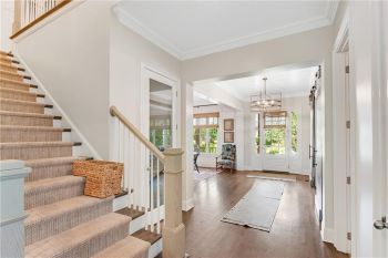 This exclusive listing won't be available for long! Nestled in a quiet cul-de-sac within the sought-after Lake Haven community, this residence is your gateway to the vibrant heart of Milton. Lake Haven is renowned for its picturesque setting, featuring an expansive 8-acre shared lake complete with a communal dock, meandering nature trails, and a serene waterfall. As you approach the property, the home's facade boasts a luxurious blend of high-quality stone and shake materials, while a generously sized, private front porch adorned with lush hydrangeas welcomes you.