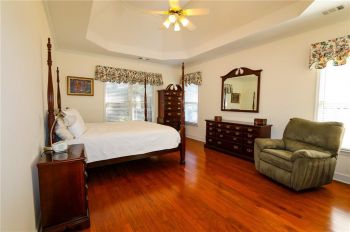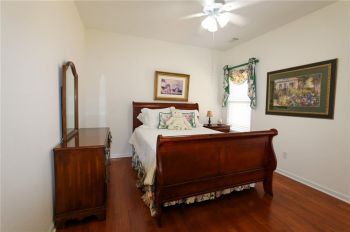 Step inside to find a home that effortlessly balances sophistication with ease of living. Greeted by gleaming hardwood floors, this splendid abode showcases a primary bedroom thoughtfully located on the main floor for ultimate convenience. On the opposite wing, you'll discover two additional bedrooms, perfect for family or guests, accompanied by a well-appointed shared bathroom.