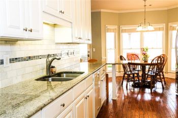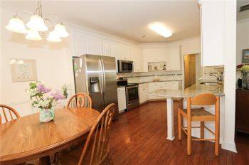 Unwind in your expansive family room, graced with a dramatic vaulted ceiling, seamlessly connected to the well-designed eat-in kitchen. The kitchen features exquisite stone countertops, inviting you to prepare your favorite meals and entertain with ease.