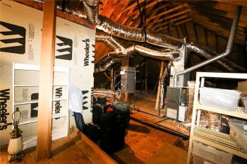 Ascend to the upper level, where you'll find an additional private retreat—an oversized bedroom complete with its own full bath. Need extra storage or considering expansion? The substantial attic space offers endless possibilities for customization.