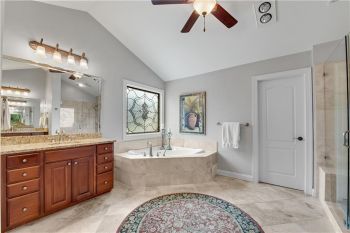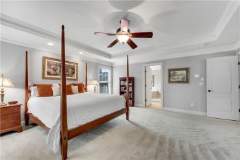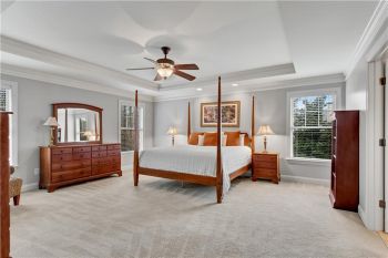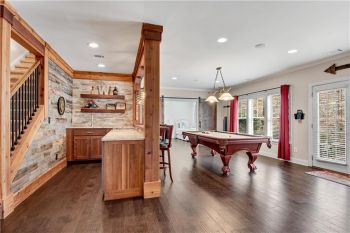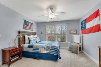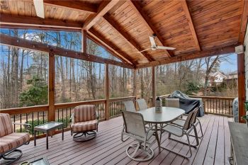 Situated on one of the largest cul-de-sac lots in desirable Edenwilde, this 7 bedroom builder’s home has so much livable space including a finished terrace level, perfect for living, working, and entertaining. The top floor includes 5 bedrooms with the primary suite that boasts trey ceilings, separate vanities, and a large walk-in closet! Two secondary bedrooms are joined by a jack and jill bathroom with private en-suite sinks. The additional two upstairs bedrooms share the third full upstairs bathroom with one having direct access. The open concept kitchen/family room offers views of the exceptionally private, wooded backyard and access to the large covered porch with a vaulted ceiling and grilling area. An oversized laundry room, study, and mudroom connected to the friend’s porch contribute to the main floor conveniences. The terrace level includes two additional bedrooms with a full bath, a spacious gathering area, workshop, storage space, and a built-in bar equipped with granite tops, ice maker, beverage center, and a walnut bar top. Additional builder upgrades include an engineered roof and floor trusses, long-lasting and energy-efficient vinyl windows, built-in speakers, and irrigated zoysia sod all around. Located in the Milton High School district, Edenwilde is a sought-after swim/tennis community in the heart of Crabapple!