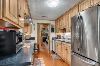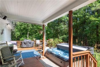 Thoughtfully updated and move-in ready, the home features a fully renovated kitchen (2021) with custom-built hickory cabinets, soft-close hinges, under-cabinet lighting, quartzite natural stone countertops, GE stainless steel appliances, and a built-in pantry. The spacious great room boasts vaulted ceilings, a custom entertainment center, and a cozy wood-burning fireplace—perfect for relaxing or entertaining. The primary suite includes a luxurious jacuzzi tub, walk-in closet, and skylights that flood the space with natural light. The second bedroom offers built-in cabinetry and a desk, ideal for a home office or guest retreat. Step outside to enjoy your private deck and hot tub, upgraded with a new heating element, circuit board, and cover. The grounds are a gardener’s dream, featuring a dedicated vegetable garden, fruiting trees and bushes (figs, blueberries, raspberries), and a variety of herbs. Mature trees and vibrant perennial plantings—azaleas, honeysuckle, daffodils, spirea, ferns, and more—create a serene, storybook setting. Additional highlights include a whole-house Generac generator, new electric panel and breaker box, heart-of-pine floors, and a 4-year-old hot water heater. The private well system was upgraded with a new tank, pump, and filtration (2021–2022), and the 500-gallon propane tank ensures reliable energy. Ample parking includes a 2-car carport and RV space, while the enclosed workshop with electricity is perfect for hobbies or storage. For outdoor enthusiasts, the property also features a private rifle range ideal for recreational shooting in a secluded setting. And for weekend cookouts, the property’s very own smokehouse adds a rustic, flavorful touch.