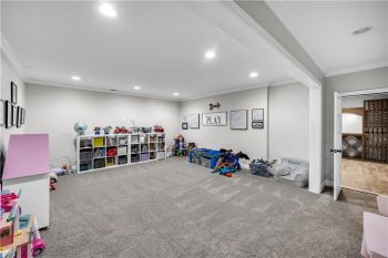 With seven spacious bedrooms, this home provides exceptional flexibility. The main level features one guest suite, while the upper level hosts four additional bedrooms, each with generous closets and designer details. The terrace level is fully finished and walk-out, including two additional bedrooms, a playroom that can easily transition into a home theater or fitness room, along with a beautiful wine cellar with cedar ceilings.